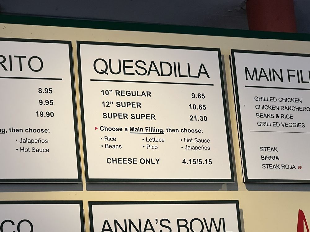 Anna's Taqueria Menu